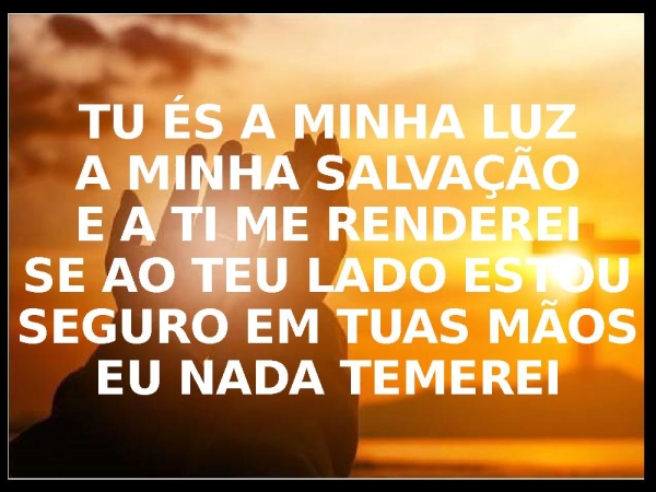 - TU ÉS A MINHA LUZA MINHA SALVAÇÃOE A TI ME RENDEREISE AO TEU LADO ESTOUSEGURO EM TUAS MÃOSEU NADA TEMEREI