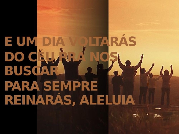 - E UM DIA VOLTARÁSDO CÉU PRA NOS BUSCARPARA SEMPRE REINARÁS, ALELUIA