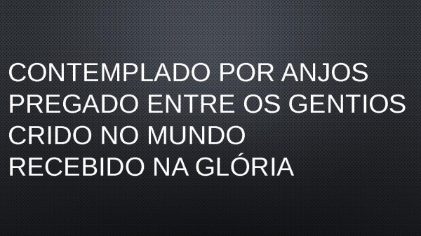 - Contemplado por anjosPregado entre os gentiosCrido no mundoRecebido na glória