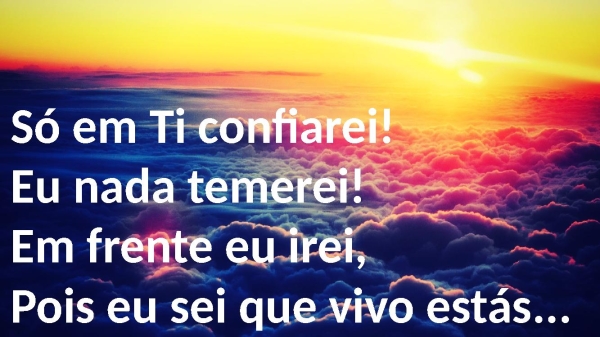 - Só em Ti confiarei!Eu nada temerei!Em frente eu irei,Pois eu sei que vivo estás...