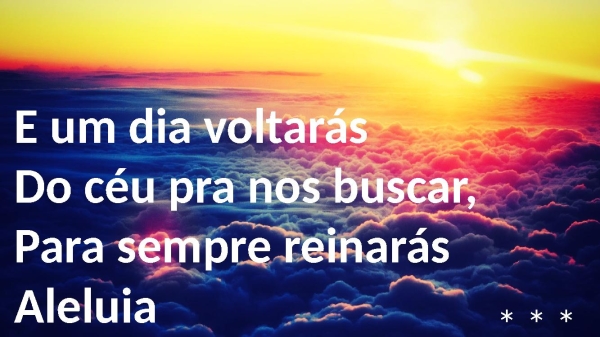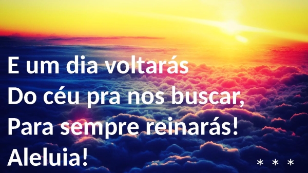 - E um dia voltarás Do céu pra nos buscar,Para sempre reinarás! Aleluia!* * *