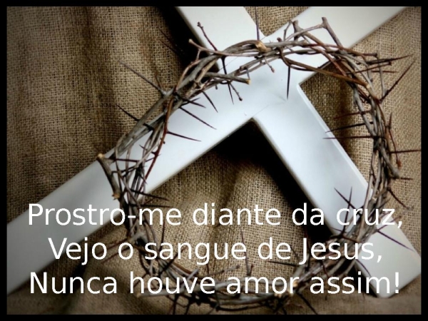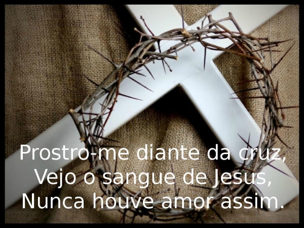 - Prostro-me diante da cruz,Vejo o sangue de Jesus,Nunca houve amor assim.