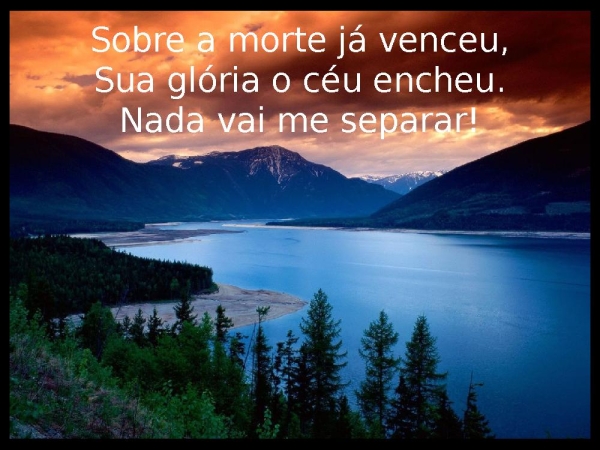 - Sobre a morte já venceu,Sua glória o céu encheu.Nada vai me separar!