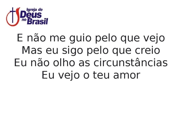 - E não me guio pelo que vejoMas eu sigo pelo que creioEu não olho as circunstânciasEu vejo o teu amor
