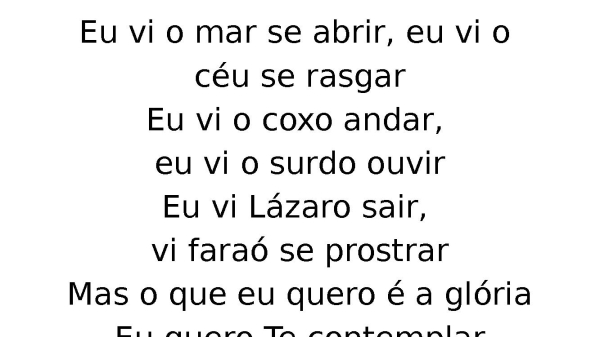 - Eu vi o mar se abrir, eu vi o céu se rasgarEu vi o coxo andar, eu vi o surdo ouvirEu vi Lázaro sair, vi faraó se prostrarMas o que eu quero é a glóriaEu quero Te contemplar