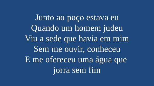 - Junto ao poço estava euQuando um homem judeuViu a sede que havia em mimSem me ouvir, conheceuE me ofereceu uma água que jorra sem fim