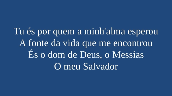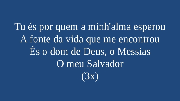 - Tu és por quem a minh'alma esperouA fonte da vida que me encontrouÉs o dom de Deus, o MessiasO meu Salvador