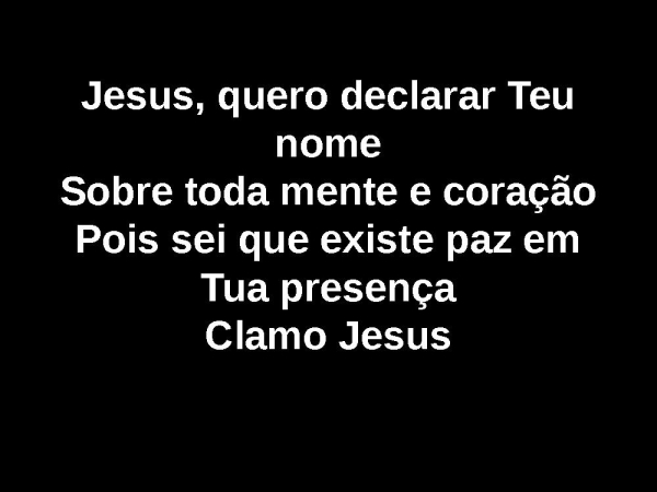 - Jesus, quero declarar Teu nomeSobre toda mente e coraçãoPois sei que existe paz em Tua presençaClamo Jesus