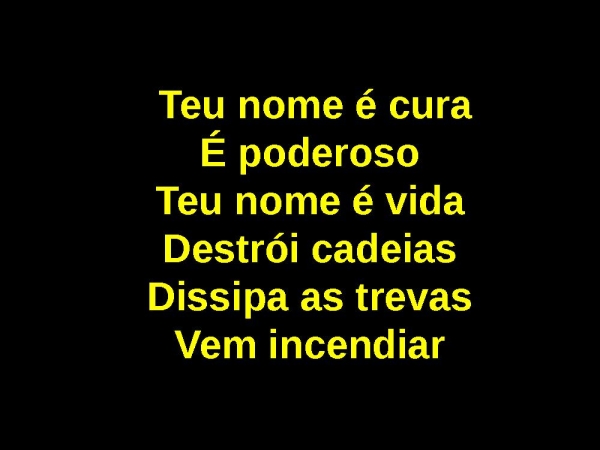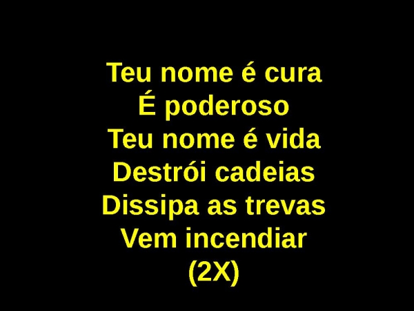 - Teu nome é curaÉ poderosoTeu nome é vidaDestrói cadeiasDissipa as trevasVem incendiar
