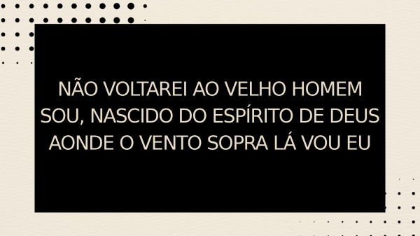 - NÃO VOLTAREI AO VELHO HOMEM SOU, NASCIDO DO ESPÍRITO DE DEUSAONDE O VENTO SOPRA LÁ VOU EU