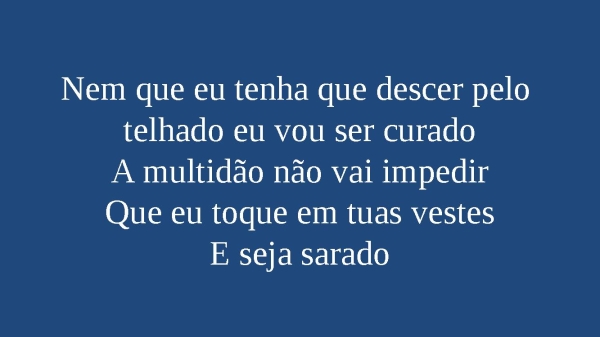 - Nem que eu tenha que descer pelo telhado eu vou ser curadoA multidão não vai impedirQue eu toque em tuas vestesE seja sarado
