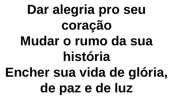 - Dar alegria pro seu coraçãoMudar o rumo da sua históriaEncher sua vida de glória, de paz e de luz