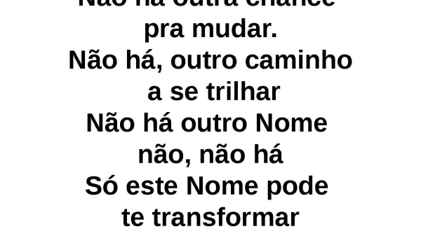- Não há outra chance pra mudar.Não há, outro caminho a se trilharNão há outro Nome não, não háSó este Nome pode te transformar