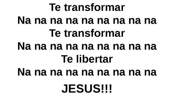 - Na na na na na na na na naTe transformarNa na na na na na na na naTe transformarNa na na na na na na na naTe libertarNa na na na na na na na naJESUS!!!