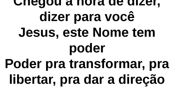 - Chegou a hora de dizer, dizer para vocêJesus, este Nome tem poderPoder pra transformar, pra libertar, pra dar a direção