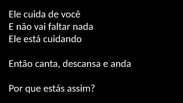 - Ele cuida de vocêE não vai faltar nadaEle está cuidandoEntão canta, descansa e andaPor que estás assim?