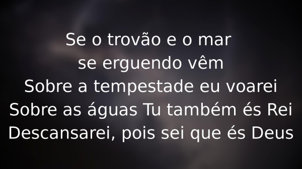 - Se o trovão e o mar se erguendo vêmSobre a tempestade eu voareiSobre as águas Tu também és ReiDescansarei, pois sei que és Deus