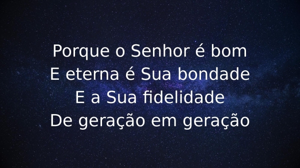 - Porque o Senhor é bomE eterna é Sua bondadeE a Sua fidelidadeDe geração em geração