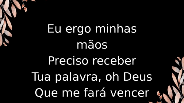 - Eu ergo minhas mãosPreciso receberTua palavra, oh DeusQue me fará vencer