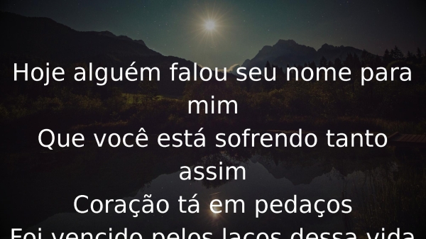 - Hoje alguém falou seu nome para mimQue você está sofrendo tanto assimCoração tá em pedaçosFoi vencido pelos laços dessa vida