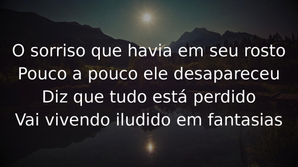 - O sorriso que havia em seu rostoPouco a pouco ele desapareceuDiz que tudo está perdidoVai vivendo iludido em fantasias