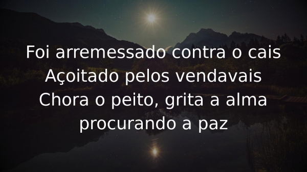 - Foi arremessado contra o caisAçoitado pelos vendavaisChora o peito, grita a alma procurando a paz