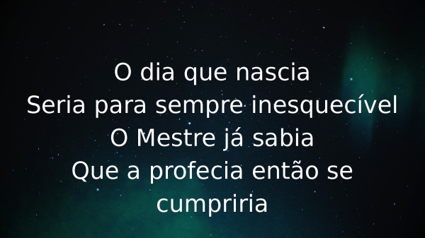 - O dia que nasciaSeria para sempre inesquecívelO Mestre já sabiaQue a profecia então se cumpriria