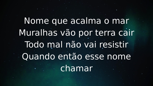 - Nome que acalma o marMuralhas vão por terra cairTodo mal não vai resistirQuando então esse Nome chamar