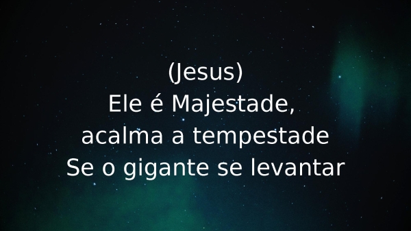 - (Jesus)Ele é Majestade, acalma a tempestadeSe o gigante se levantarPode então esse Nome chamar