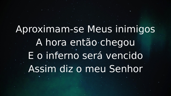 - Aproximam-se Meus inimigosA hora então chegouE o inferno será vencidoAssim diz o meu Senhor