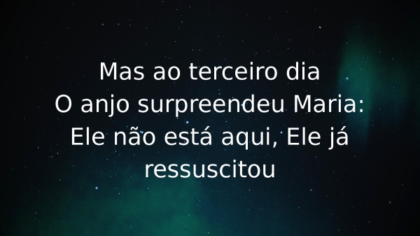 - Mas ao terceiro diaO anjo surpreendeu Maria: Ele não está aqui, Ele já ressuscitou