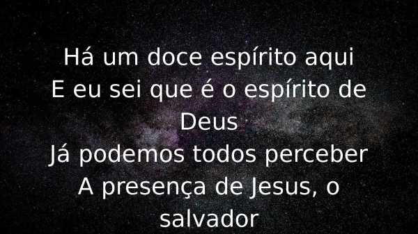 - Há um doce espírito aquiE eu sei que é o espírito de DeusJá podemos todos perceberA presença de Jesus, o salvador