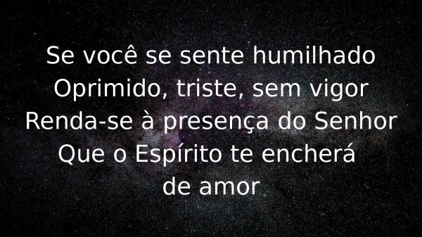 - Se você se sente humilhadoOprimido, triste, sem vigorRenda-se à presença do SenhorQue o Espírito te encherá de amor