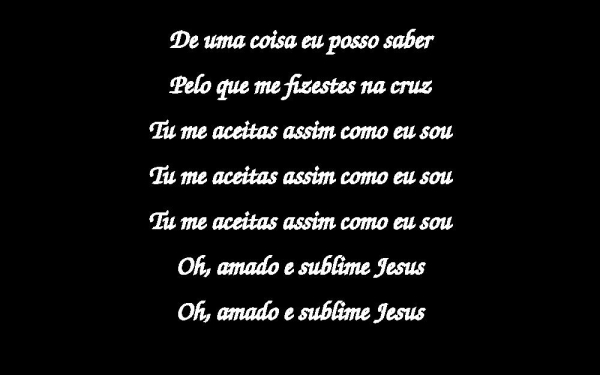 - De uma coisa eu posso saberPelo que me fizestes na cruzTu me aceitas assim como eu souOh, amado e sublime Jesus