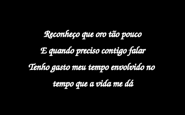 - Reconheço que oro tão poucoE quando preciso contigo falarTenho gasto meu tempo envolvido no tempo que a vida me dá