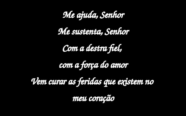 - Me ajuda, SenhorMe sustenta, SenhorCom a destra fiel, com a força do amorVem curar as feridas que existem no meu coração