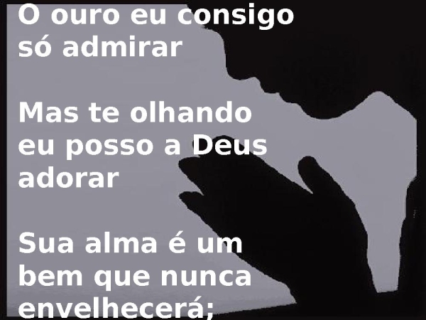 - O ouro eu consigo só admirarMas te olhando eu posso a Deus adorarSua alma é um bem que nunca envelhecerá;