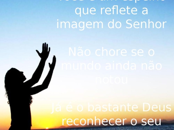 - Você é um espelho que reflete a imagem do SenhorNão chore se o mundo ainda não notouJá é o bastante Deus reconhecer o seu valor