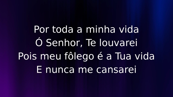 - Por toda a minha vidaÓ Senhor, Te louvareiPois meu fôlego é a Tua vidaE nunca me cansarei