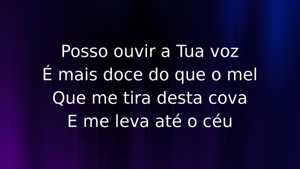 - Posso ouvir a Tua vozÉ mais doce do que o melQue me tira desta covaE me leva até o céu