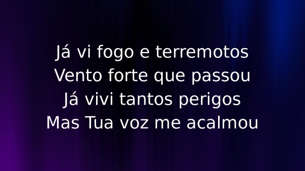 - Já vi fogo e terremotosVento forte que passouJá vivi tantos perigosMas Tua voz me acalmou