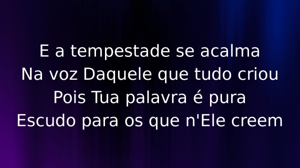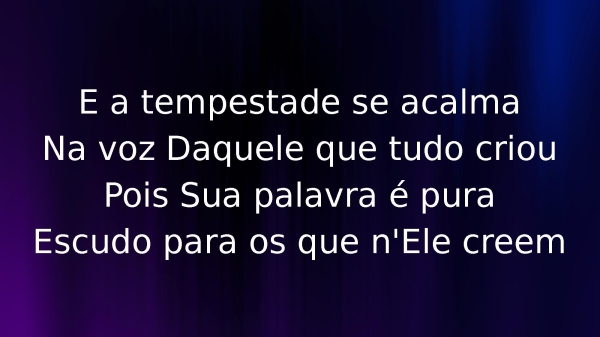 - E a tempestade se acalmaNa voz Daquele que tudo criouPois Sua palavra é puraEscudo para os que n'Ele creem