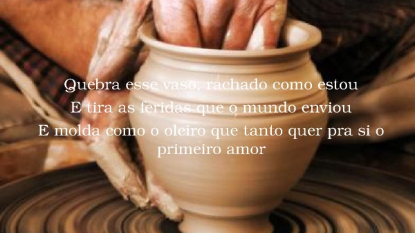- Quebra esse vaso, rachado como estouE tira as feridas que o mundo enviouE molda como o oleiro que tanto quer pra si o primeiro amor