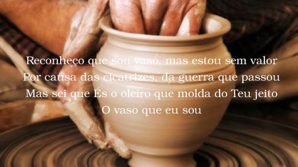 - Reconheço que sou vaso, mas estou sem valorPor causa das cicatrizes, da guerra que passouMas sei que És o oleiro que molda do Teu jeitoO vaso que eu sou