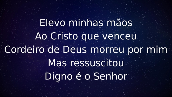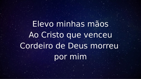 - Elevo minhas mãosAo Cristo que venceuCordeiro de Deus morreu por mimMas ressuscitouDigno é o Senhor