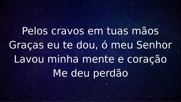 - Pelos cravos em tuas mãosGraças eu te dou, ó meu SenhorLavou minha mente e coraçãoMe deu perdão