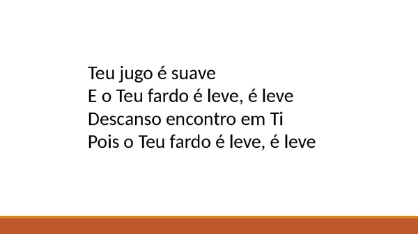 - Teu jugo é suaveE o Teu fardo é leve, é leveDescanso encontro em TiPois o Teu fardo é leve, é leve