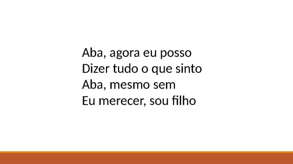 - Aba, agora eu possoDizer tudo o que sintoAba, mesmo semEu merecer, sou filho
