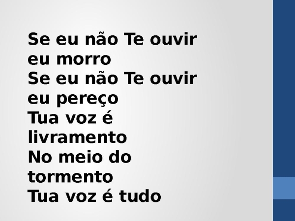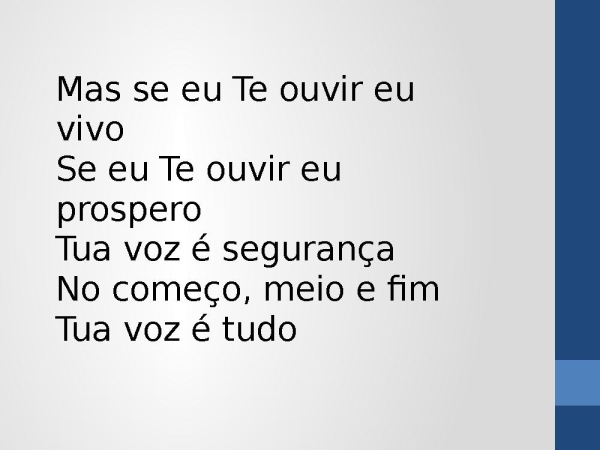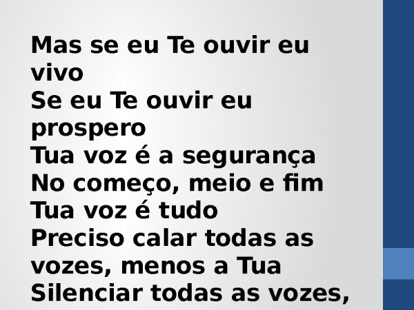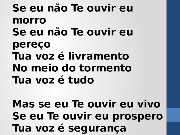 - Mas se eu Te ouvir eu vivoSe eu Te ouvir eu prosperoTua voz é segurançaNo começo, meio e fimTua voz é tudo
