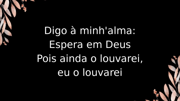 - Digo à minh'alma:Espera em DeusPois ainda o louvarei,eu o louvarei